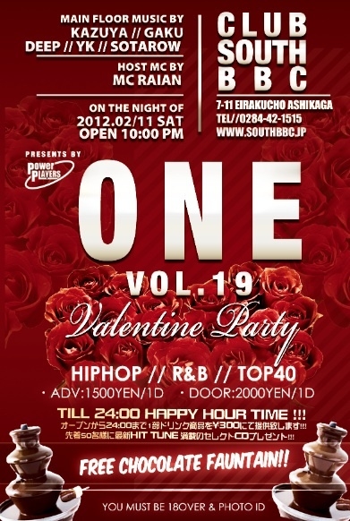 開催終了2/11 土 ONE Vol.19 Valentaineday Special ClubSouthBBC