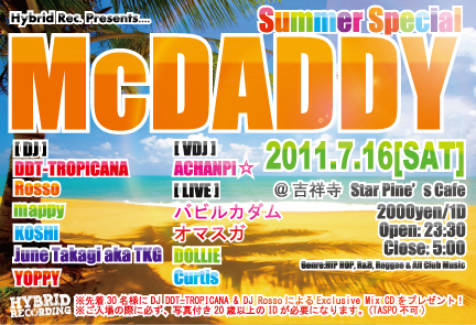 開催終了2011/7/16(Sat) 『McDADDY』@吉祥寺Star Pine's Cafe