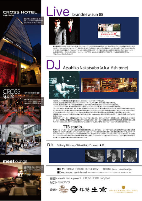 Atsuhiko Nakatsubo a.k.a fish toneとbrandnew sun 88が、クロスホテル札幌で行われるイベントに出演することになりました