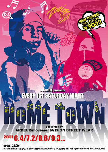 2011.8.6(SAT) STARNITE presents EVERY 1ST SATURDAY NIGHT!! HOMETOWN Supported by DANCE STUDIO ARDEUR/ movement / VISION STREET WEAR