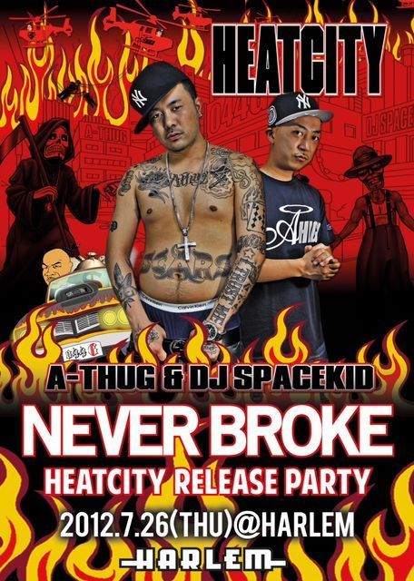 開催終了今夜7/26(木)"NEVER BROKE" @渋谷HARLEM!! 『HEATCITY RELEASE PARTY』A-THUG & DJ SPACEKID!!