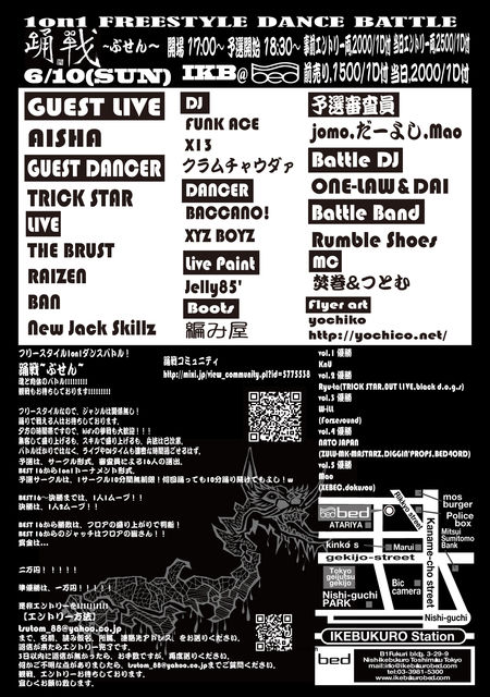 17:00~ DJ X13 18:30~ Judge Move 18:35~ 予選 19:20~ DJ FUNK ACE 19:50~ DANCE 20:00~ BEST 16 20:20~ LIVE 21:00~ BEST 8 21:15~ LIVE 2 21:45~ 準決勝、決勝 22:10~ DJ クラムチャウダァ
