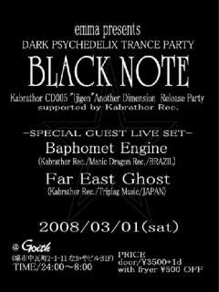 Baphomet Engine (Kabrathor Rec./Manic Dragon Rec.) Baphomet EngineはLuiz Fernando SecchinattoとFabio Aurelio S. Japiassuによって結成されたサイケデリックトランスプロジェクトであり、2003年に活動を開始し、既にヨーロッパ、インド、コスタ・リカ、日本等でプレイを経験。ブラジルでもBrazilian PsyTrance Circuitやフェスティバル等で継続的にプレイし続けている。 2004年から2006年にかけては数々のレーベルより28曲をリリース、DatakultとのスプリットアルバムをNabi Recordsよりリリースし、Manic Dragonよりフルアルバムをリリースしている。 そして現在LuizとFabioはKabrathor Recordsの一員として活動しており、各々のソロプロジェクトでも精力的に活動している。