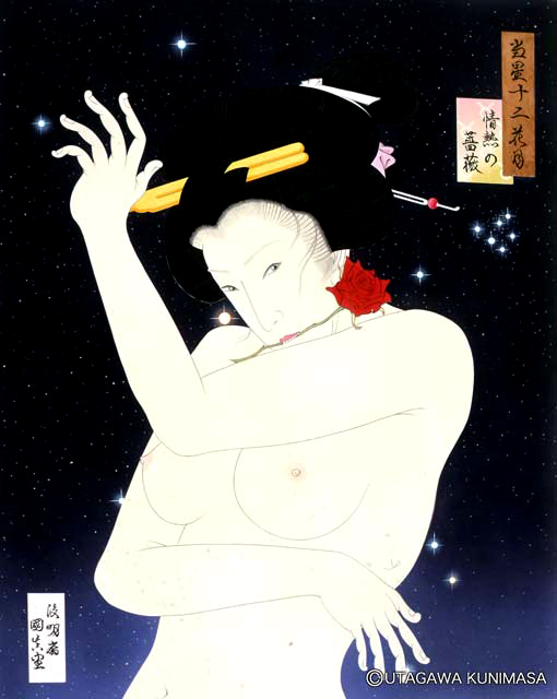Utagawa Kunimasa was born in Katsushika Ward, Tokyo, in 1978. In 2000, he became a disciple of Toyokuni Utagawa VI. Due to the sudden death of Utagawa VI, however, he taught himself ukiyoe of so-called ‘Utagawa Style’. Up to date he has been active creating various artworks and holding both his individual and group exhibitions. One of his recent activities includes the Utagawa group exhibition in Ginza art space in October 2006.