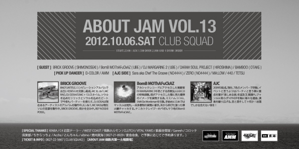 開催終了About Jam vol'13 at SQUAD 2012/10/06