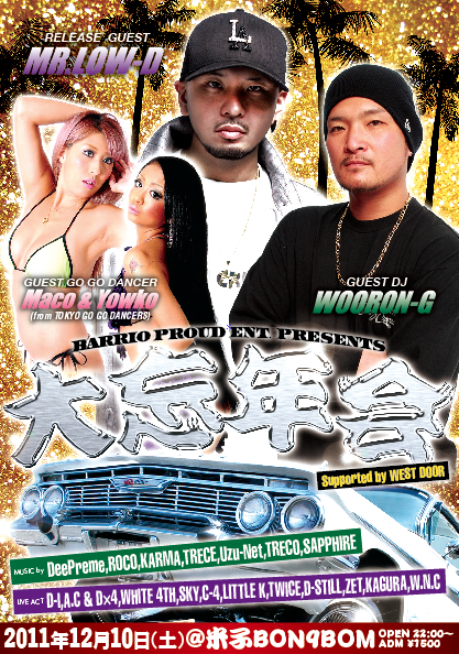 BARRIO PROUD ENT. PRESENTS 大忘年会 supported by WEST DOOR 米子@BON9BOM OPEN 22:00〜 adv/1500 yen (no drink)