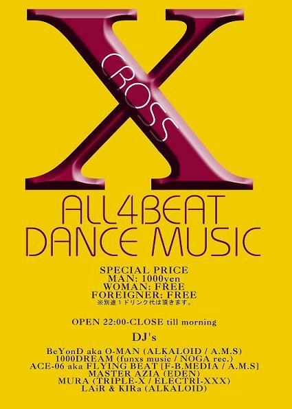 開催終了本日、心斎橋LUNAR CLUBで[X -CROSS-] !FLYING BEAT & 1000DREAM 「W」 BIRTHDAY PARTY!!!!