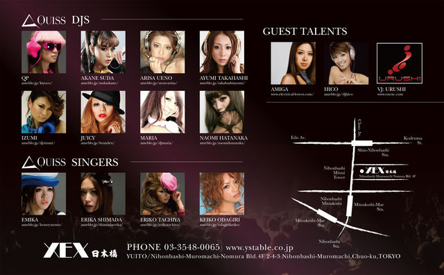DJ QPを中心にDJ、シンガーやファッションモデルなどのメンバーで構成された、ガールズクリエイターユニット"QUISS"のローンチパーティ。 http://www.quiss.me/ 様々なジャンルの第一線で活躍する彼女たちのパワーが初めて集結し、DJ、ライブに加えオリジナルブランド"QUISS"や水着ブランド"VACASTA"のファッションショーも開催。総勢20名のガールスアーティスト達の音とファッションの融合によるお洒落で洗練されたイベント。 この模様はELLE TVによって取材撮影されます。