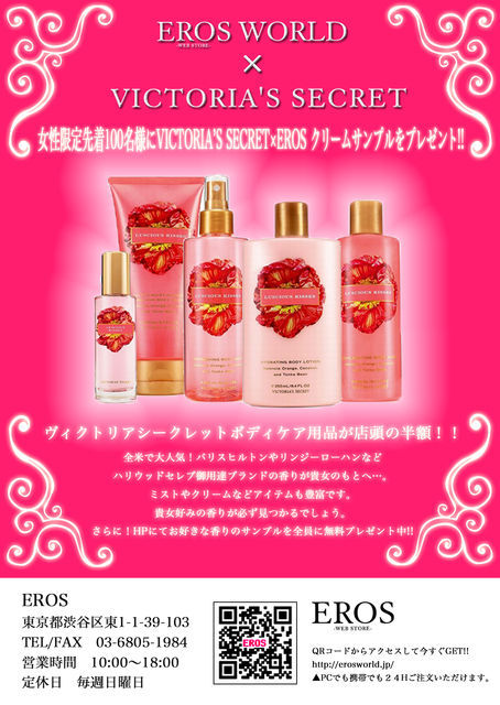 女性限定先着100名様にはVICTORIA''S SECRET×EROS ボディークリームサンプルをプレゼント