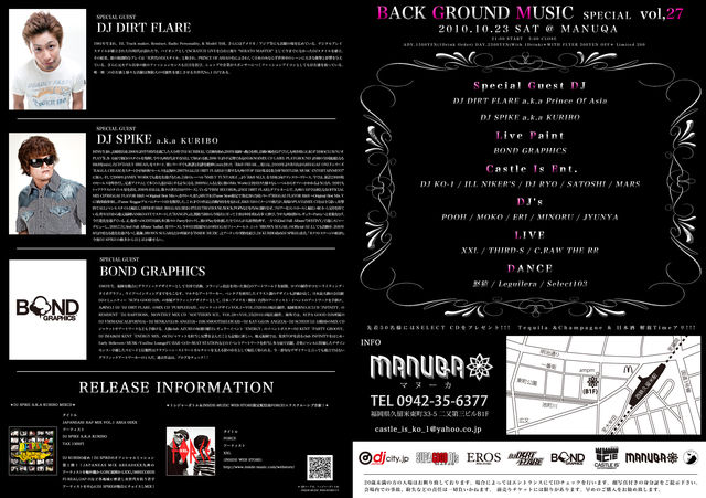 Special Guestには現在全国、アメリカ、アジア等で大活躍中のDJ DIRT FLARE!!!