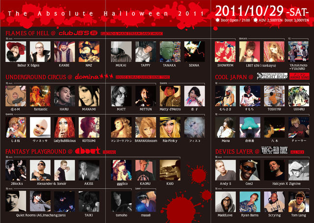 * You can buy tickets for the event on the day at Club JB's, Cafe Domina, Club About and Red Rock. 前売りチケットをお持ちでないお客様はJB's・cafe domina・club about・Red Rock の4会場にて入場料を払ってリストバンドを受け取ってください。