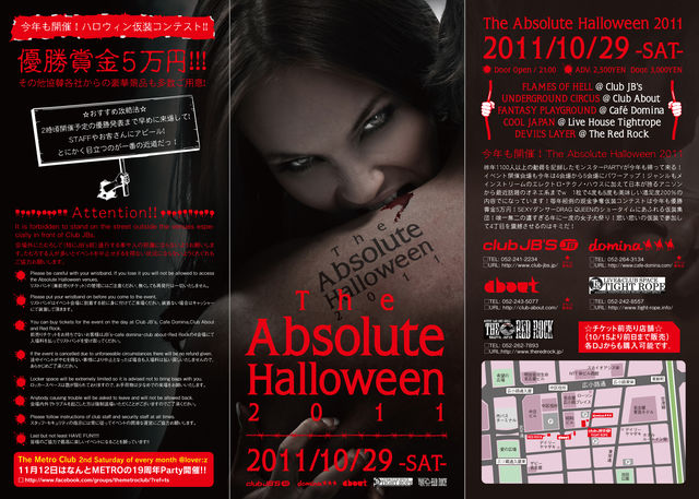 * Please be careful with your wristband. If you lose it you will not be allowed to access the Absolute Halloween venues. リストバンド(兼前売りチケット)の管理にはご注意ください、無くしても再発行は一切いたしません。