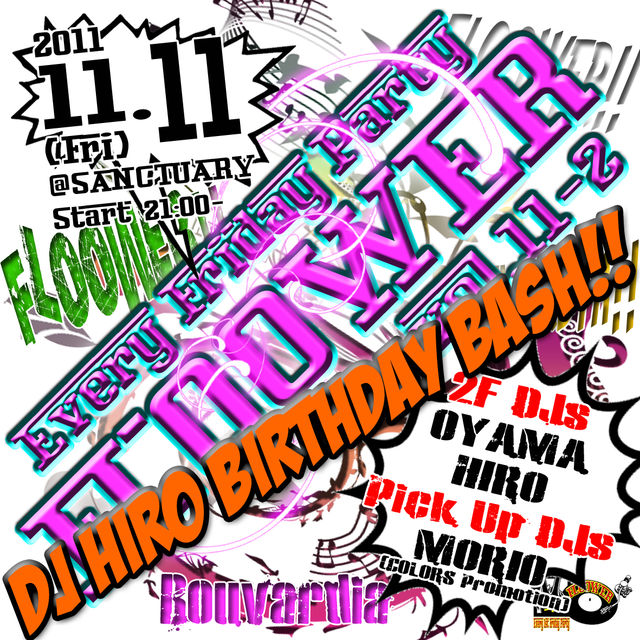 Pick Up Party!! 4日(金)「FLOOWER」Pick Up DJ SHOGO(SUPA GOOD DJs) 5日(土)「NIGHT CRUISING+」Guest DJ GEORGE 7日(月)「BLACK MONDAY」@VIBE 11日(金)「FLOOWER -DJ HIRO BIRTHDAY BASH!-」Pick Up DJ MORIO 18日(金)「HIT PARADE」@SANCTUARY 5F 19日(土)「NIGHT CRUISING+」Guest DJ COAKI,CROSS ONE 24日(木)「Winning Eleven SANCTUARY CUP」@SANCTUARY 3F