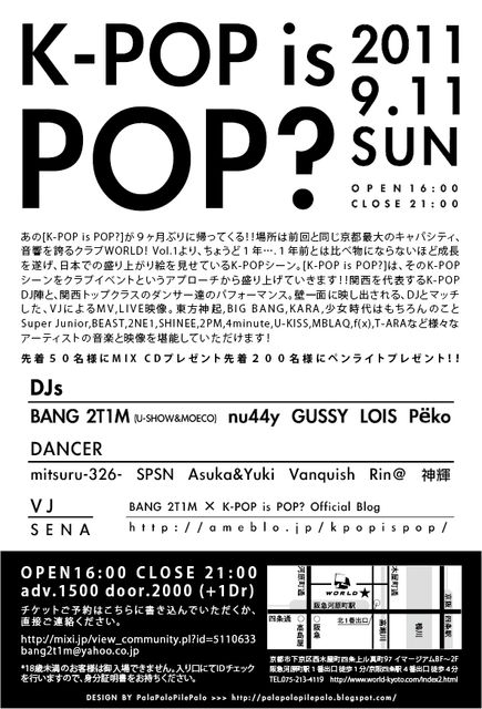 Vol.1より、ちょうど1年….1年前とは比べ物にならないほど成長を遂げ、日本での盛り上がり絵を見せているK-POPシーン。[K-POP is POP?]は、そのK-POPシーンをクラブイベントというアプローチから盛り上げていきます!!