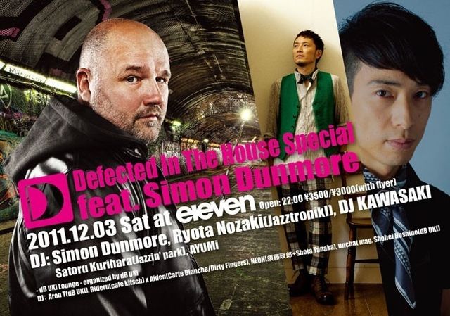 世界屈指のハウス・レーベル[Defected]の看板パーティ「Defected In The House」がelevenで初開催。その記念すべき初陣に、レーベル・ボスとして[Defected]の栄位を守り続けているSimon Dunmoreが登場する。Bob SinclarやDimitri From Paris、DJ Gregoryなどから絶対的な信頼を獲得し、The ShapeshiftersやCopyrightなどを発掘。DJとしても活躍し、ロンドンやマイアミ、イビサなどのビッグ・イベントでもプレイしてきた。そんな彼が約2年ぶりに来日し、最新のDefectedサウンドでダンスフロアを煽動する。