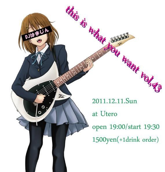 告知させて下さい! 12月11日(日)福岡薬院UTERO 「this is what you want vol,43」 pm7時オープンpm7時30分スタート料金前売り 当日共に1500円(要1ドリンクオーダー) 出演warsawpact、23℃、 TAJEELING STANDALONE MODE、 THE TORTOISE CITY BAND ELECTRO(北九州) DJはまじん UTERO tel092-201-0553 福岡市中央区高砂1−22−2アーク7番館B1 http://www.utero.jp 以上です