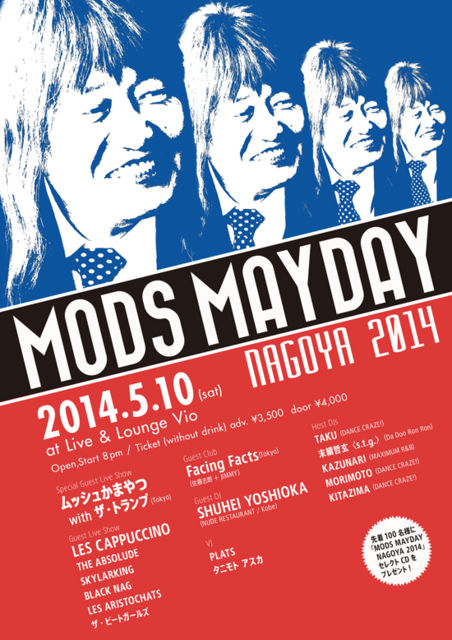 Blokes and Birds! "MODS MAYDAY NAGOYA" is the most happenin' 60s party in Japan! Join us in your coolest 60s threads for an all-nighter filled with the best DJs and live R&B, Soul, Blues, Jazz, Beat, Ska and more! The night begins with Vespas and Lambrettas cruising the town in our vintage scooter run. See you there!