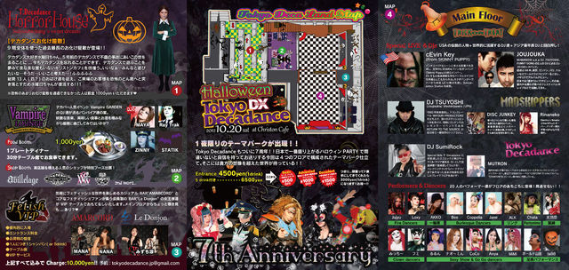 【Fast Ticket】優先的に入場できる前売り券 毎年長蛇の列ができるハロウィンデカダンス。長い列に並ばず入場できるファストチケットを発売! さらに!!今回はファストチケットをお買い求めいただくと、《 500yenディスカウント 》!! ※ドレスコードディスカウントされた価格での販売になりますので、当日のドレスコードチェックに応じ、500yen or 1000yenをエントランスにてお支払いいただきます。 販売店 □Decadance BAR 東京都新宿区新宿5-17-13 オリエンタルウェーブ9F http://ameba.jp/decadancebar/ □Bad Little Boo 原宿店 東京都渋谷区神宮前6-6-8-201 http://www.badlittleboo.com/