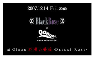 You are warmly invited to the final Ooooze of 2007!! The Ooooze year-end party takes place at Desert Rose this week - the beautiful spacious club in Ginza - in collaboration with their resident crew Black Rose.