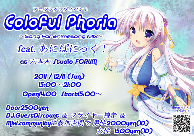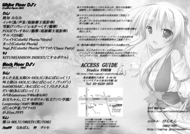 【DJ's】 DJ きんたま乱太郎(A-HOL!C/あにぱにっく!) DJ 叫士郎(A-HOL!C/あにぱにっく!/アニメゾン) DJ soh(MOSAIC./あにぱにっく!/O.P.P.A.I) DJ だい祐(あにぱにっく!) DJ みりあ(amoroso、F@ke $HoW) DJ お父ちゃん。(こす☆ボウル/私立アニソン学園/loopy relay/AMP/樂物語) DJ ぱじゃ(声宴/ラグナロク) DJ がぶ(ex:PFP)