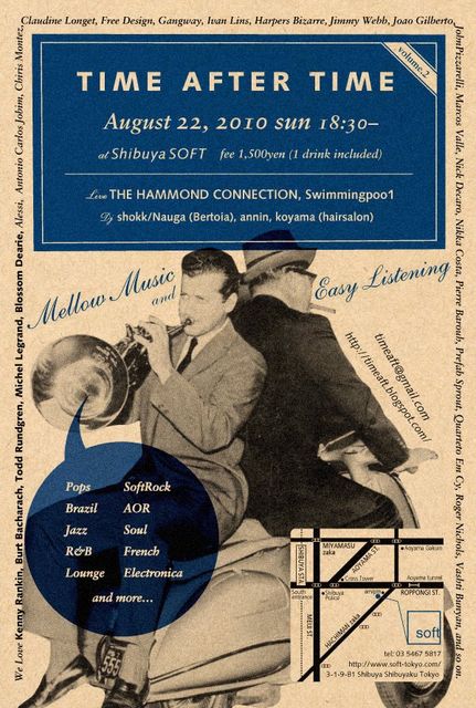 Shokk/Nauga、annin、koyamaの3人が主催するDJ+LIVEイベント。 コンセプトは、「メロウ・ミュージック&イージーリスニング」。音楽のジャンルはPops,SoftRock,Brazil,Aor,Jazz,Soul,R&B,French,Lounge,Electronica and more と幅広いです。 厳選された名曲を聞きながら、おしゃべりしたり、まったりとくつろいでいただけるとうれしいです♪ お気軽にあそびにきてください♪
