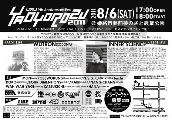 開催終了8/6(土)野外「YAOYOROZU2011」JAU 9th Anniversary Fes