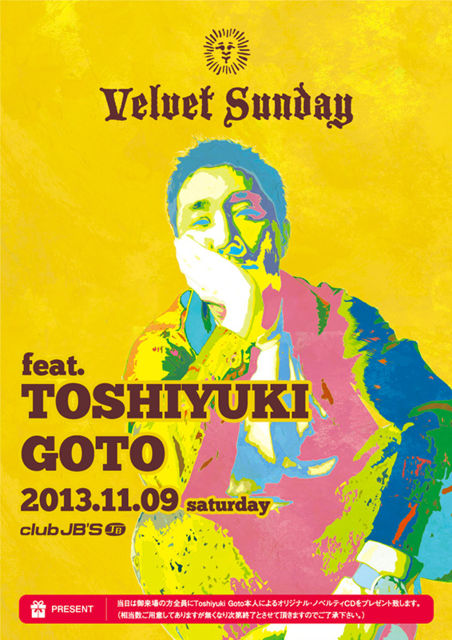 尽きることを感じさせない音楽への情熱と探究心、DJにおける実験精神とドラマチックなストーリー性、そして何よりキャリアを重ねた重鎮でありつつも純粋かつ主体的にパーティーを楽しみ続けている姿勢にVelvet Sundayが強いシンパシーを感じていたDJの一人Toshiyuki Goto氏が、当パーティーとしては約二年振り、三人目のフィーチャリングDJとして遂に登場!!日本を代表するベテランDJ/プロデューサーの中でもオーセンティック且つアバンギャルドな決定的とも言える独自性を持ち、常に新たな方向性を示してくれる稀有の存在であることはすでに周知の事実。東京・天狗食堂を始め、普段から共演を重ねている盟友DJ Shigetaとの息の合ったコンビネーションも手伝って、我々が求めるパーティーの世界観に自然体で融合し、いつも以上に濃密な空間になるのは必至です!!単なるゲスト・イベントとは違うダンス・フロアに根差したリアリティのある音楽体験をもたらしてくれるでしょう!!