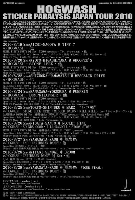 HOGWASH STICKER PARALYSIS JAPAN TOUR 2010
