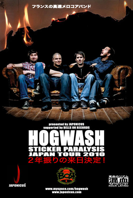 2001年、フランスで結成されたメロディックハードコアバンドHOGWASH(ホグウォッシュ)。GREEN DAY、NOFX、NO USE FOR A NAME、BAD RELIGION等に影響されて音楽を始める。2003年オリジナルEP"INSERT TITLE HERE"(5曲入り。現在BELLS ON RECORDSより再発されている)をリリース。そして2005年には、11曲の1STフルアルバム"OLD'S COOL, NEW'S COOL"を発表。このアルバムで、バンドは世界的に知られるようになり、NO USE FOR A NAMEやMUCH THE SAMEなどUSのメロディックハードコアバンドのツアーサポートに大抜擢される。その後WARPEDツアー、ヨーロッパツアー、ロシアーツアー、UKツアーを精力的に行い、NO USE FOR A NAME、SICK OF IT ALL、MILLENCOLLIN、MUCH THE SAME、A WILHELM SCREAM、M*SIXTEEN 、THE LAWRENCE ARMS、CAPTAIN EVERYTHING、HATEFUL MONDAY等とも共演。躍動感に溢れたパフォーマンスと直情的なサウンドで、今最もフランスのPUNK界で注目されているHOGWASH。ファン待望の来日公演を見逃すな!!
