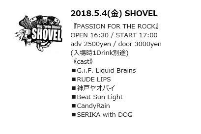 【WE ALWAYS LOVE SHOVEL】 〜〜shared library 4Days〜〜 @BigTwinDiner SHOVEL 5/4(fri) 『PASSION FOR THE ROCK』 16:30 OPEN 17:00 START adv 2500yen door 3000yen (1Drink別途)