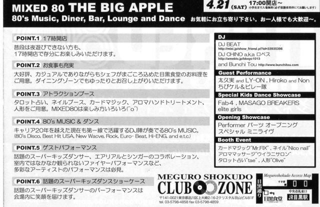 開催終了4/21(土)MIXED80 『THE BIG APPLE 』 多彩なアーティストの競演