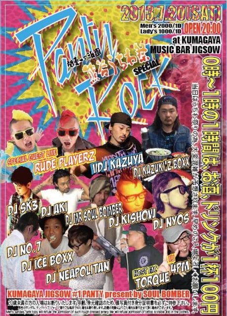 開催終了2013.7.20(土)1杯100円!!PANTY ROCK @熊谷MUSIC BAR JIGSOW