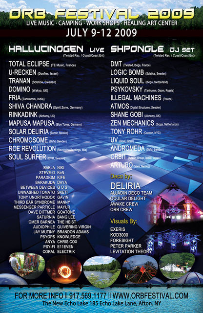 多人種が始まる野外パーティーORB Festival 2009が7月9日から4日間、豪華ラインナップと共に開催。パーティー場所となる、The New Echo Lake Resortは、ニューヨークから車で約3時間の森と湖に囲まれた絶好のロケーション。