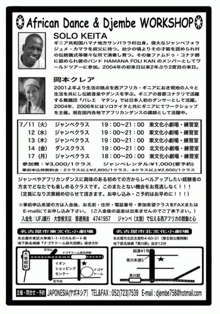 【ジャンベフォラ “ソロ・ケイタ”】ワークショップ in NAGOYA