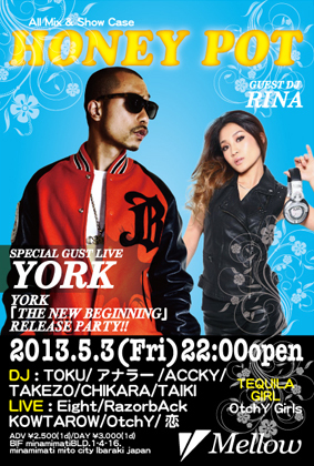 開催終了5/3(Fri)"HONEY POT"YORK NEW ALBUM 「THE NEW BEGINNING」Release Party!!@MELLOW MITO