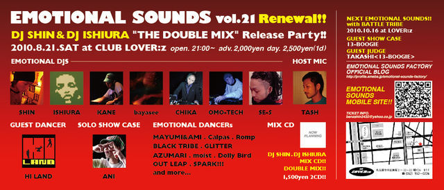 二ヶ月に一度、垣根のない良質なGROOVEとDANCE SHOW CASEによりアツい支持を得てきたEMOTIONAL SOUNDS!