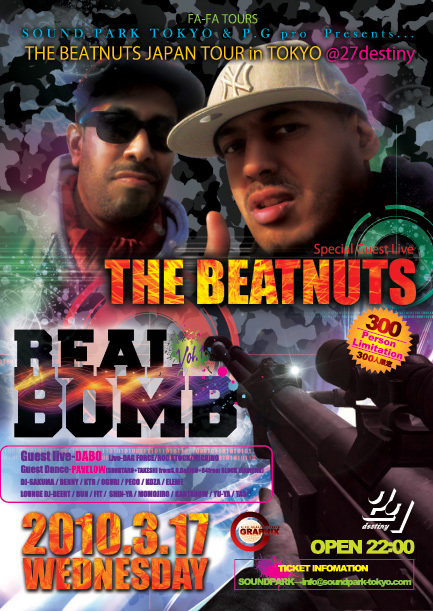 開催終了3.17(WED)REAL BOMB-BEATNUTS JAPAN TOUR'10-@27destiny限定300名前売りチケット発売開始!!