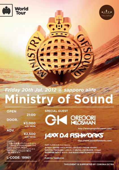 開催終了2012.07.20(FRI)【札幌】MINISTRY OF SOUND CLUB TOUR@sapporo alife