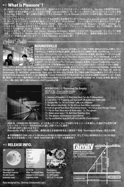 ★Pleasure+ "Roundsville 2nd Album “Running On Empty” Release Party!!" @club bar FAMILY