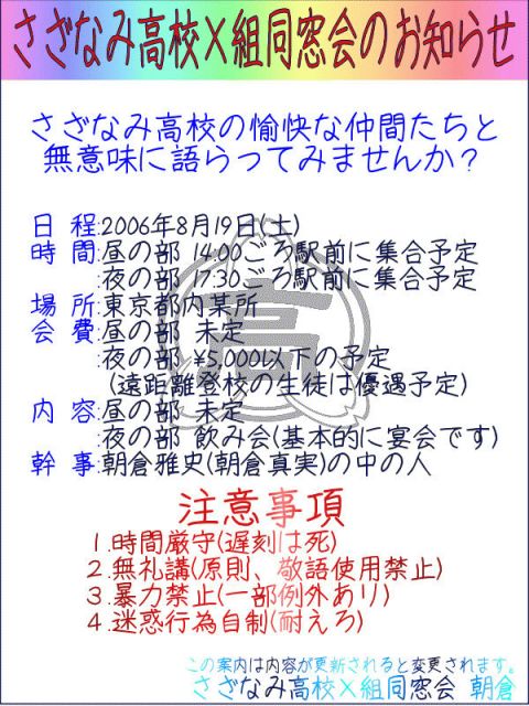 日時:2006/8/19(土)13:00ぐらいから(前夜祭は別物です)