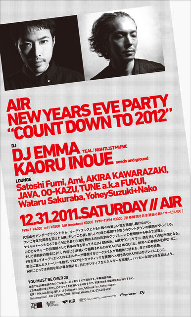 開催終了優待アリ!12/31 DJ EMMA&KAORU INOUE@AIR