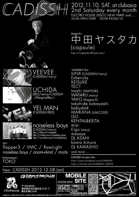 開催終了11/10(sat)中田ヤスタカ出演!!!CADISSH@club asia