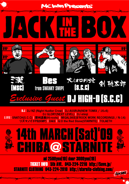 開催終了3.14(SAT).漢(MSC).BES(SWANKY SWIPE)S.C.CREW・剣桃太郎GEST LIVE@千葉club STARNITE