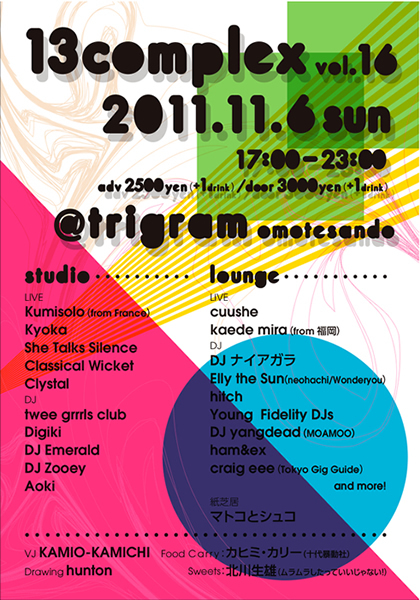 flauより『My Love For You Is A Cheap Pop Song』をリリースしたKumisolo、アルバム・リリース以来初めてとなる来日公演が東京発のドリーミンDIYミラーボール・イベント13complexによって開催されます! 共演にはRaster-Notonより初の女性アーティストとしてリリース間近のKyokaを始め, 大注目の宅録ニューウェーブ・デュオShe Talks Silence、flauよりEPリリース間近のCuusheら、ベッドルームから世界へと発信する新世代女性アーティストが競演。さらにはJusticeのGaspardによって発掘されたシンセサイザー・バンドCRYSTALやフランス人アーティストDigikiらエレクトロ勢の参加も追加決定! Twee Grrrls Club, Digiki, Elly the Sun, Yangdead, Emeraldとindie, rock, electronic, skweee, world music, post new age, beatsとジャンルを軽々と越境するDJ達も揃え、ミラーボールな一夜をお届けします!