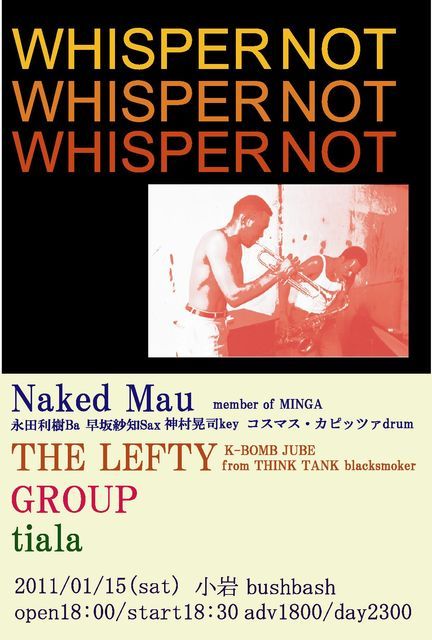 開催終了2011/1/15(sat) tnprx & bushbash presents"WHISPER NOT"@小岩BushBash