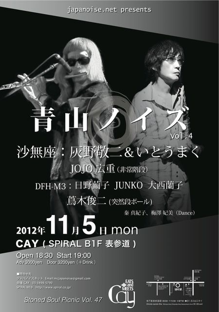 【いとうまく】 「音楽の全体性回復」を目指す求道者、全体音楽家。日本で最初にノイズのフルアルバムを出したNORDに在籍。ムーンライダース鈴木慶一のプロデュースで、歌もの作品を徳間ジャパンから発表。 深遠な響きの電子ノイズから、唯一無二の即興ギター、ピアノ、堕天使の如きボイス・パフォーマンスまで、表現は多面体の顔を持つ。数々の音楽家・舞踏家と共演。ジャパノイズ・ネット代表、ジャパノイズ・オーケストラ主宰。作品に「伊藤まく,美川俊治,大友良英/Aoyama Noise Live at Cay」 など。