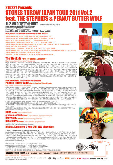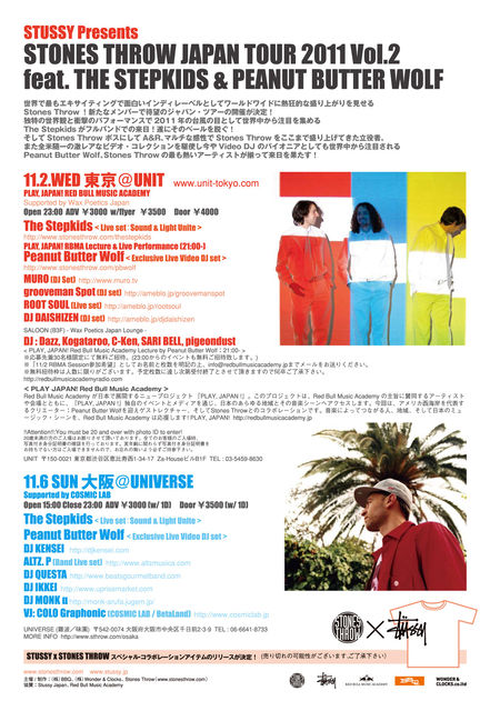 STUSSY presents STONES THROW JAPAN TOUR 2011 Vol.2 feat. THE STEPKIDS & PEANUT BUTTER WOLF