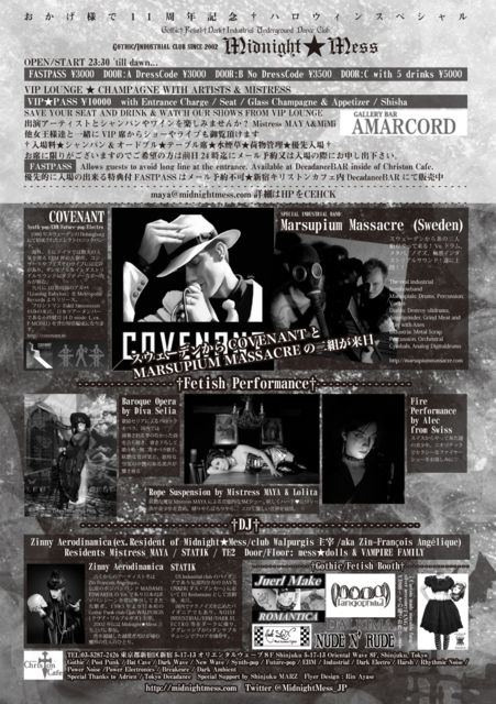 10/12(Sat) Midnight★Mess 11周年記念パーティー&ハロウィンスペシャル 11th ANNIVERSARY PARTY & HALLOWEEN SPECIAL - COVENANT Leaving Babylon Japan Tour - SPECIAL GUEST: COVENANT from Sweden!!