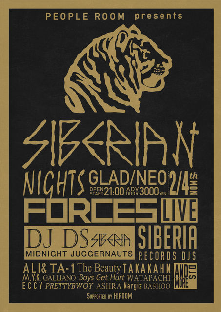 PEOPLE ROOM Presents 「SIBERIAN NIGHTS(TOKYO)」、2月4日(月)に、渋谷のGlad/LOUNGE NEOの2会場連動で開催が決定!