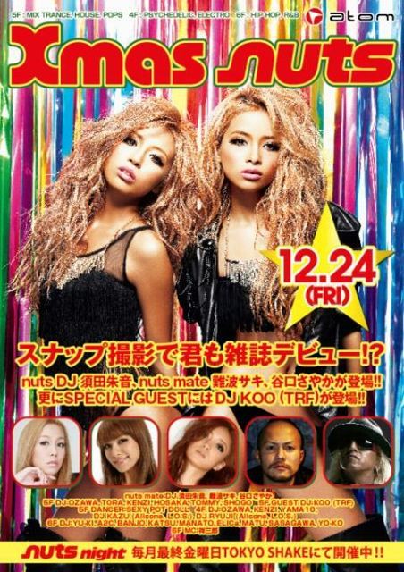 12/24(金)は人気雑誌『nuts』が贈るXmas nuts nightを開催!nuts mateのDJ 須田朱音、難波サキ、谷口さやか が登場。SPECIAL GUESTにはDJ KOO(TRF)が登場します!!
